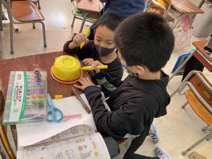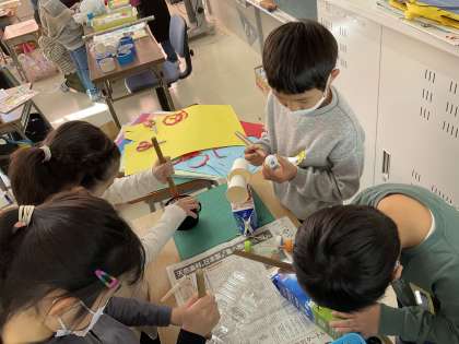 2組も、自分の設計図をもとに、一生懸命おもちゃを作りました。