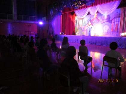 11月19日(金) 3・4年生 観劇(2) 公開日 2021/11/19 更新日 2021/11/19 大久保っ子ニュース 2回目の公演は3・4年生が鑑賞しました。 やはり、おもしろいところは共通するようで3・4年生も1・2年生と同じところで笑っていました。観劇の後、3年生の男の子が「先生、今時コーヒーメーカーなんて盗むかね」とほほえみながら聞いてきたのが印象的でした。3・4年生ともなるとお話の世界と現実の世界を区別して鑑賞しているようです。