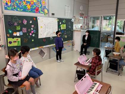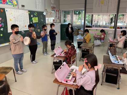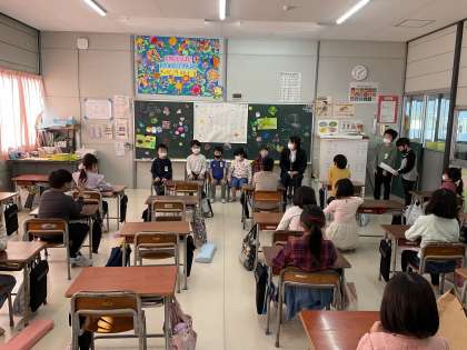 11月19日(金)、1組では、教育実習生とのお別れ会が開かれました。感謝の気持ちをこめて、子どもたちが準備しました。
