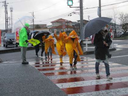 雨の中、子供たちの見守りをしていただき、ありがとうございます。