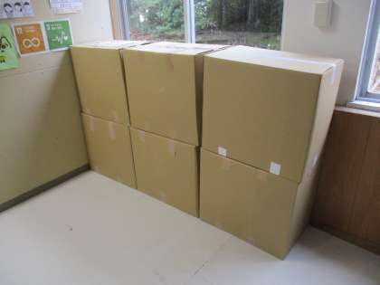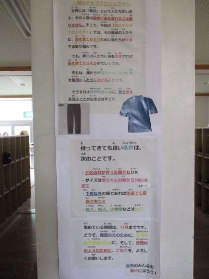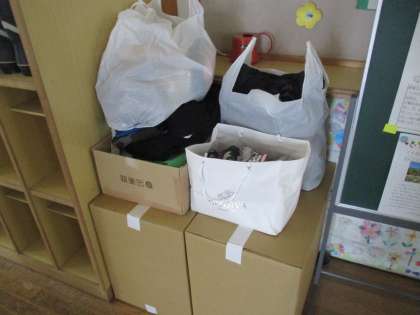 世界の難民の子供たちに届ける子供服がたくさん集まっています。