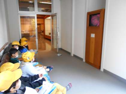 薬の作り方などを映像を見て学習しました。その後の見学では、映像で見た道具を確認していました。