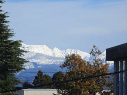 青空が広がる日でした。 日に輝く立山連峰が美しかったです。 写真は、職員室からの風景です。