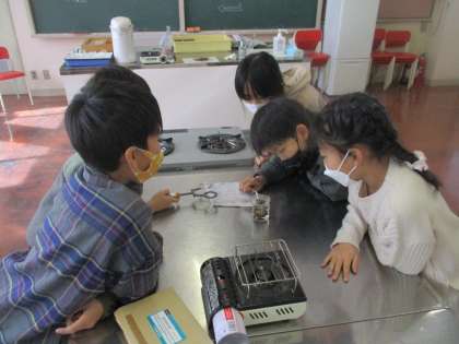 自分が立てた予想と比べながら真剣なまなざしで実験を行っていました。