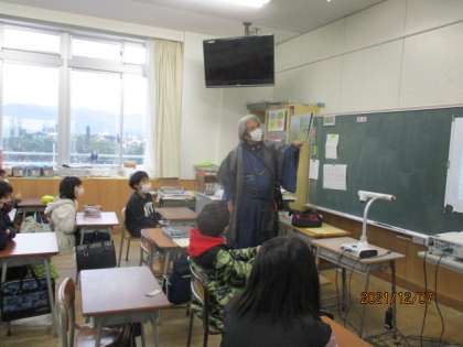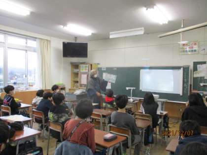 本日は地域の方による読み語りの日でした。5年1組では「クマよ」という本を読んでいただきました。