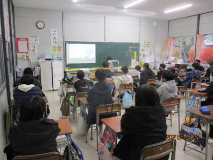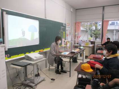 本日は、地域の方による読み語りの日でした。6年1組では「シオドアと ものいうきのこ」という本を読んでいただきました。