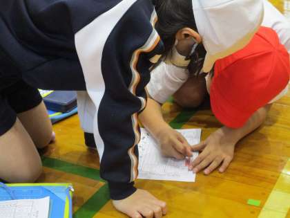 10跳ぶごとに、指を立てていく数え方をします。算数で学習した10のまとまりで数える方法の応用です。