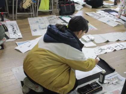 5年生は、書き初めで「初日の海」と書きます。
