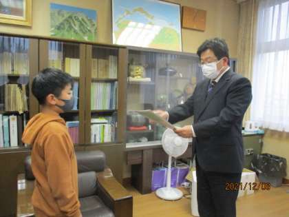 MOA美術館児童作品展で受賞した3年生と5年生に賞状を伝達しました。