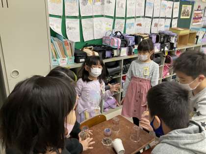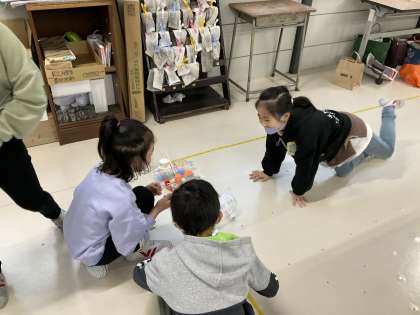 中には、待ち時間を減らすために、もっとおもちゃを増やしたらいいのではないかという意見も出ました。その出た意見から、さらにおもちゃを改良し、今度は、1年生を「おもちゃランド」に招待する作戦を立てています。試行錯誤しながら試す姿が頼もしいです。