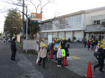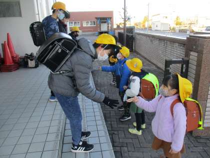 委員会の子供たちが、「挨拶ジャンケン」をしています。
