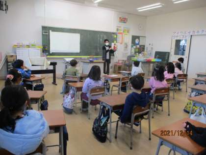 1年1組では「ゆうことクリスマス」という紙芝居を読んでいただきました。