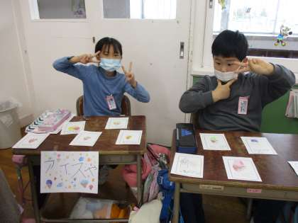 お店では、「花をください」ではなく「バラをください」など花の名前を言うことを学習しました。