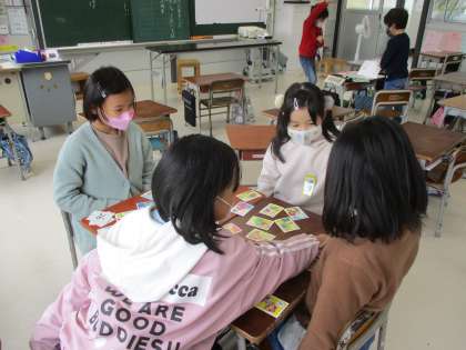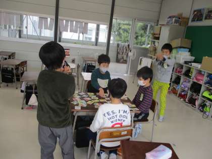 12月22日(水) 2年生 休み時間 公開日 2021/12/22 更新日 2021/12/22 2023年度 2年生 休み時間に教室にいた子たちで犬棒カルタをしました。 読み札を少し聞いただけで、すぐに取る子もいます。集中して勝負をし、楽しく過ごしました。