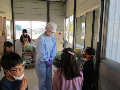 12月23日(木) 2年生 感謝の気持ち 公開日 2021/12/23 更新日 2021/12/23 2023年度 2年生 プレハブ校舎で食べる給食も今日で最後でした。 子供たちは「美味しい給食をありがとうございました」と言葉で伝えていました。給食搬入員さんも笑顔を見せてくださいました。