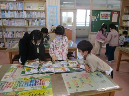 12月23日(木) 2年生 図書室 公開日 2021/12/23 更新日 2021/12/23 2023年度 2年生 冬休み用の本を借りました。子供たちは図書室が大好きで、借りる本を選んだ後は、司書の先生におすすめの本を聞いたり、大きな本を読んだりして過ごしていました。