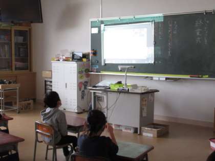子供たちは、リモート画面を見て、しっかりと話を聞いていました。