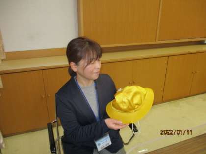 冬期間の登下校中は、安全帽子をかぶる、手袋をしてポケットから手を出す、周りが見えるようにフード等はかぶらないようにしましょう。