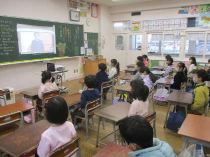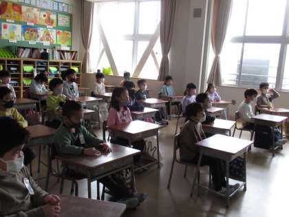 1月11日(火) 1年生 始業式 公開日 2022/01/11 更新日 2022/01/11 2023年度 1年生 3学期が始まりました。 1年生もよい姿勢で始業式に参加しました。 校長先生や発表するお兄さんお姉さんの顔を見て、しっかりと話を聞きました。