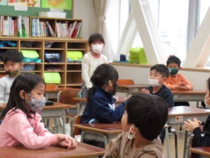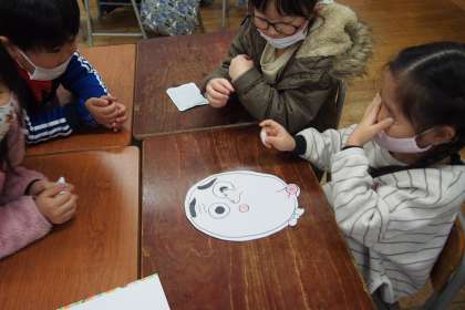1月11日(火) 1年生 学級活動 公開日 2022/01/11 更新日 2022/01/11 2023年度 1年生 始業式後は、各学級で冬休みの思い出を話したり、福笑いをしたりして過ごしました。 明日は、いよいよ初めての書初大会です。金賞を目指してがんばってほしいです。