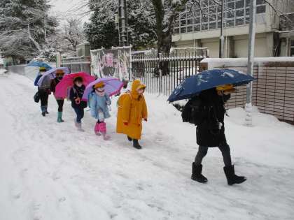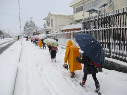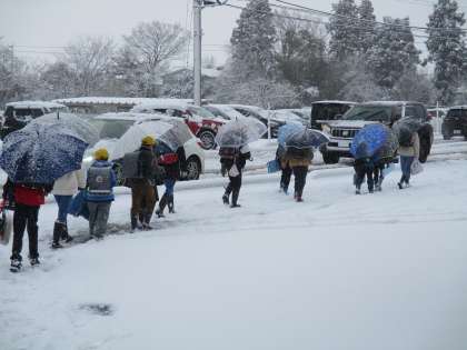 雪が積もりました。今週は雪の予報が出ています。いつも以上に気を付けて登下校しましょう。