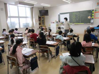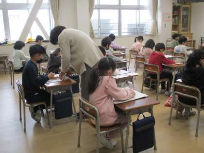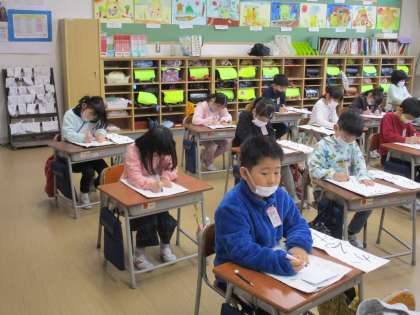 1月12日(水) 1年生 書初大会(1) 公開日 2022/01/12 更新日 2022/01/12 大久保っ子ニュース 本日、全学年で書初大会を行いました。 1年生は、硬筆墨で「かるた」と書きます。 集中して書いています。
