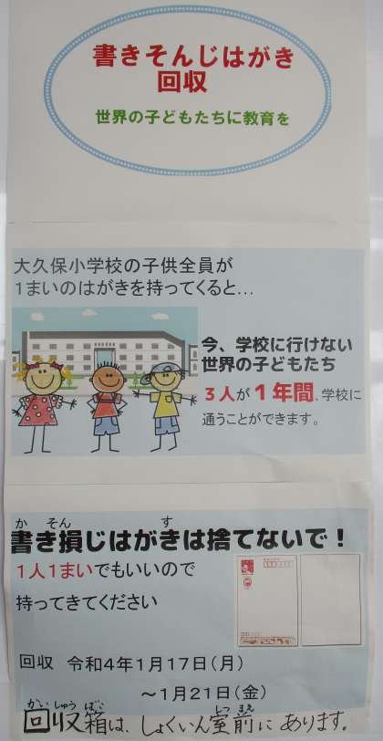 1月14日(金) 書き損じはがきを回収しています