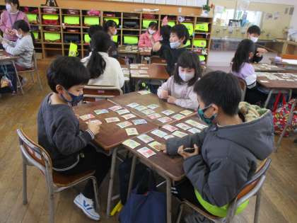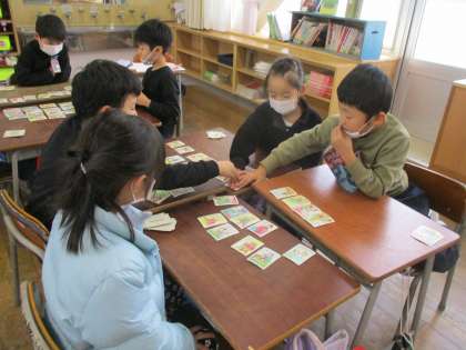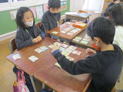 1月中に、学年でカルタ大会をしようと計画しています。大会に向けて、各クラスで練習をしています。静かに待つことなど、マナーを学ぶ場にもなっています。「冬休みに家族でやったよ。」という声をたくさん聞きました。ありがとうございます。