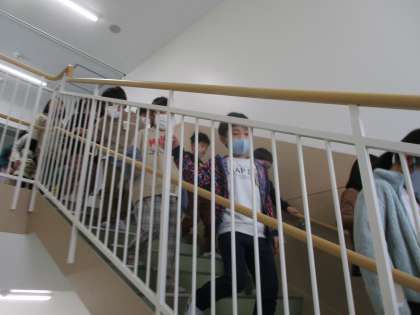1月14日(金) 2年生 新しい校舎 公開日 2022/01/14 更新日 2022/01/14 2023年度 2年生 図書室に本を返した帰りに、新しく出来た階段を使いました。自動で電気が付くことに驚いていました。これからも大切に校舎を使っていきましょう。