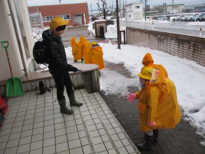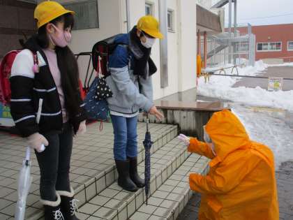 「挨拶ジャンケン」で挨拶を交わしています。