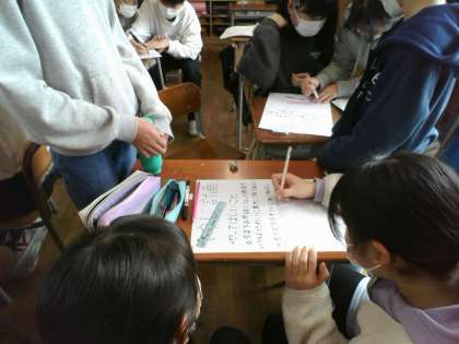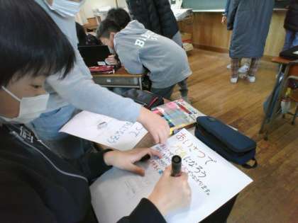 雪かきを呼びかける子供たち、あいさつをもっと活発にしたいと願う子供たち、そうじをきちんと行ってきれいな学校にしたいと願う子供たち。