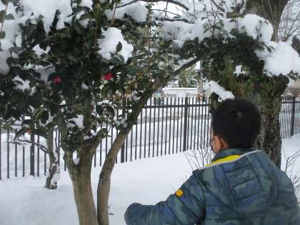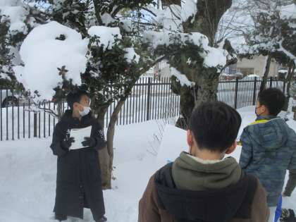 理科では、校舎の周りの草木を観察しに行きました。雪の中咲いている花を観察するなどして、見付けた物や気付いたことをノートにまとめました。