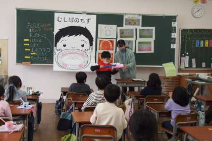 保健室の先生に来てもらい、6才臼歯の話をしてもらいました。奥にはえる歯なので、どのように磨けばよいかみんなで考えました。