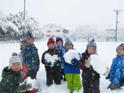 みんな、とても上手に雪玉を作っていました。