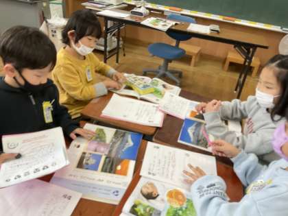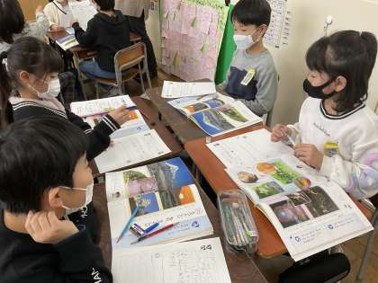 1組の道徳では、「うつくしいもの、うつくしいこころ」について、教科書の写真を基に考えました。まずは、グループで話し合い、思ったことをみんなに発表しました。