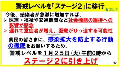 富山県は、明日から感染症警戒レベルを「ステージ2」へ引き上げます。学校では、あらためて、登下校時を含めて次の点について指導しました。