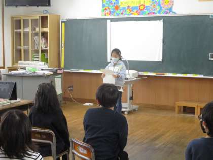1月26日(水) 2年生 動画撮影のリハーサル 公開日 2022/01/26 更新日 2022/01/26 2023年度 2年生 中止になった学習参観で予定していた発表内容を動画撮影して後日配信する予定です。 今日は、動画撮影のリハーサルを行いました。 お辞儀や声の大きさなどを意識しながらできるように取り組みました。本番に向けて練習を重ねていきます。