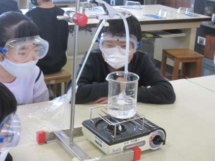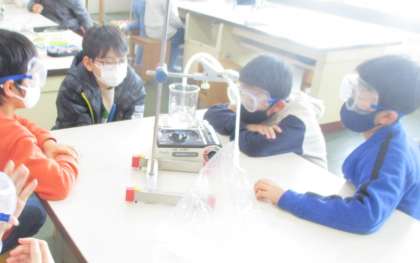 1月26日(水) 4年生 学習の様子 公開日 2022/01/26 更新日 2022/01/26 2023年度 4年生 理科では、水が温まるとできる泡は、水なのか空気なのか何なのかを調べるために実験を行いました。
