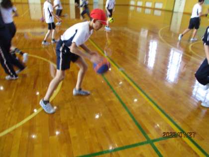 1月27日(木) 5年生 体育科 目指せ!ゴール!!