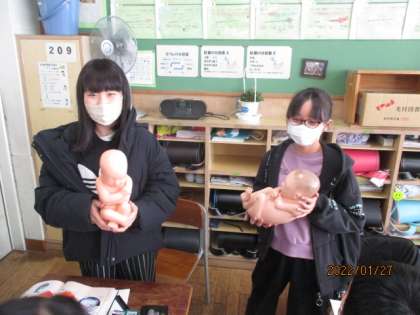 受精の様子を映像で見たり、おなかの中の赤ちゃんの模型を抱いてみたりして大きさを感じたりしました。どの子も真剣に取り組み、知識を広げようとしていました。