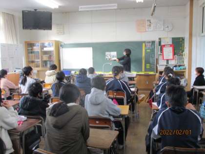 6年1組では「あたしゆきおんな」と「島ひきおに」を、6年2組では「わたしには夢がある」を、4年1組では「島ひきおに」を読んでいただきました。