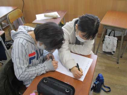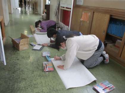 運動委員会は、2月中旬に実施する「なわとびオリンピック」に向けて、準備を進めています。手分けして掲示物を作成しています。