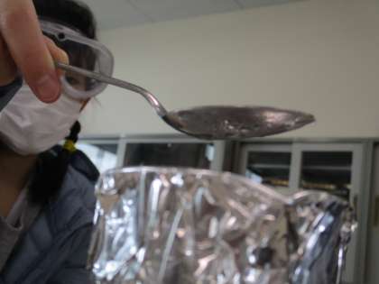 スプーンに水滴がつきました。