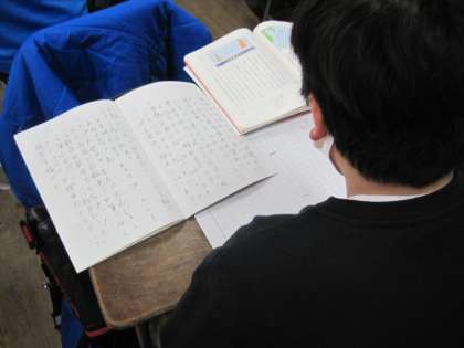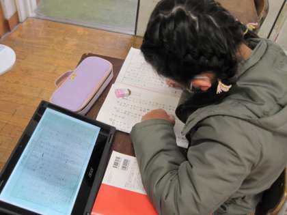 国語科では、説明文を必要な言葉は残し、省略できる部分は短くするなどじっくり考えて要約しました。