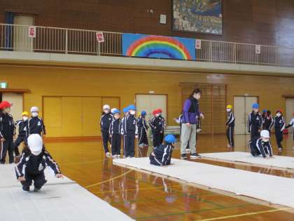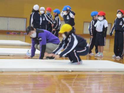マット運動、跳び箱、縄跳びをローテンションして練習しています。