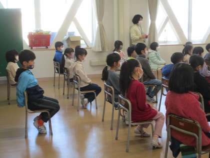 2月7日(月) 1年生 大沢野図書館の読み語り(2)