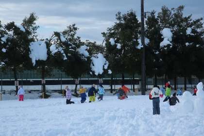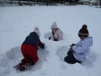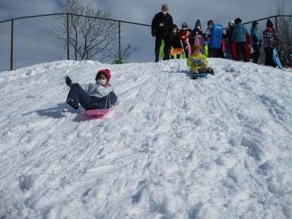 1時間という短い時間でしたが、グラウンドやスキー山といった家には無い広い場所で、特大雪だるまを作ったり、スキー山からそりで滑ったりと思い思いに楽しく遊びました。