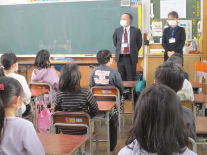 今日は、2年生が大沢野図書館の方からお話を聴く日です。