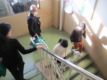 代表児童が図書館の方を案内しています。