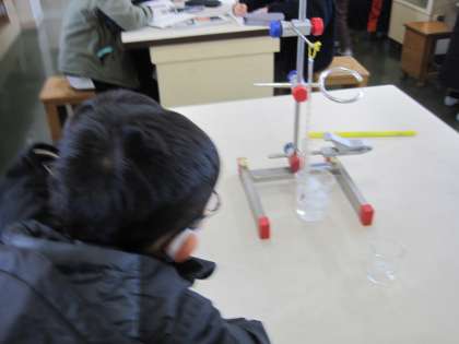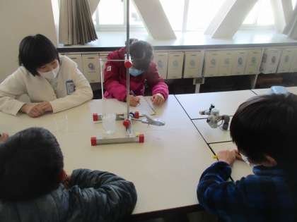 理科の学習では、水が凍るまでの様子を実験しました。温めたときと比べながら観察する様子が見られました。